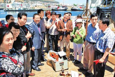 南非开普敦当地时间2012年11月18日上午10时18分,正在执行中国大洋第26航次大洋考察任务的“大洋一号”船在南非首都开普敦举行了开放日活动。中国驻南非开普敦总领馆总领事梁梳根出席活动并致辞,总领馆副总领事童德发、办公室主任刘轩、全非洲中国和平统一促进会开普敦分会会长胡建华等和华人、华侨代表以及“大洋一号”船全体人员参加了活动。
