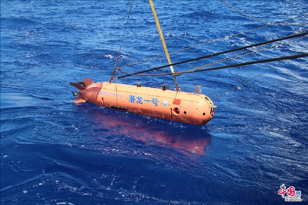 9月7日15点,“潜龙一号”深入水下5000多米,完成光学探测任务使命后,抛下压铁开始上浮水面?!昂Q罅拧毖杆俳崾阶刺?,赶往预估的上浮地点,等待更准确的方位座标。根据设计,“潜龙一号”在抛载后会发出无线电信号,当它浮出水面时,潜器艏部的铱星通信设备也会不断传回潜器的方位信息。