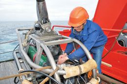 本航段第一次近海底磁力与自然电位法作业从3月7日21时开始,拖体下潜至2000米深,测线长度23公里,历时近12小时。航段磁力组负责人吴涛介绍说,拖体携载有磁力探头,以检测海底磁力情况,如遇金属矿产,将探测到磁力异常。而自然电位法是通过探测海水电位差判断海底是否存在矿体异常。