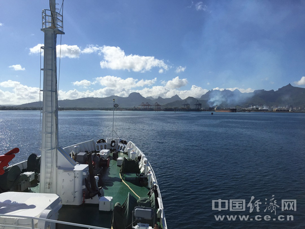 图为“大洋一号”船抵达路易港。