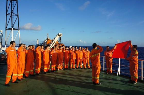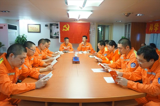 当地时间6月30日下午5时,为庆祝中国共产党成立九十四周年,海洋六号举办了一次别开生面的纪念“七一”党日活动。全体党员汇集到甲板上,面对鲜红的党旗,庄严宣誓,为实现祖国海洋强国梦而努力奋斗!