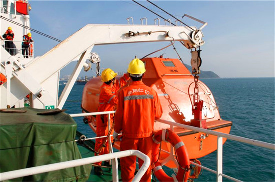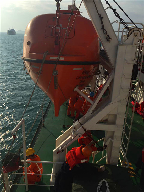 施放救生艇操作演练。