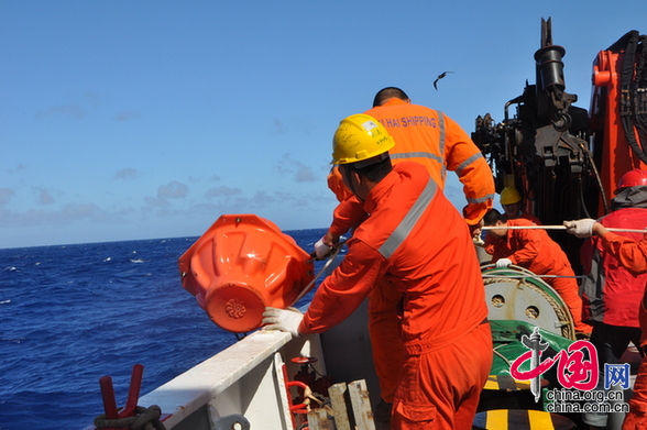 当地时间2月27日下午1点到5点,AUV(4500米级深海资源自主资源勘查系统)作业组顺利回收中国大洋40航次第一航段在龙旂热液区布下的4个信标,这标志着“潜龙二号”已成功完成在龙旂热液区的勘查使命。(葛蕾)