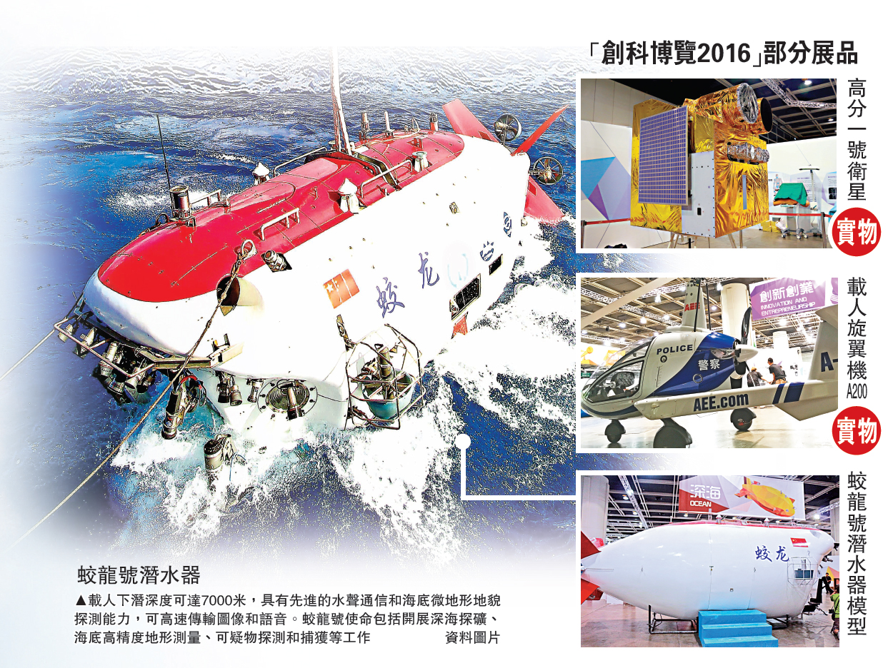 为提高港人对国家领先科技的认识,团结香港基金今日起至十月一日举办“创科博览2016”,博览分为八大展区,占地10万平方尺,展出50项首次在本港亮相的国家尖端科技。