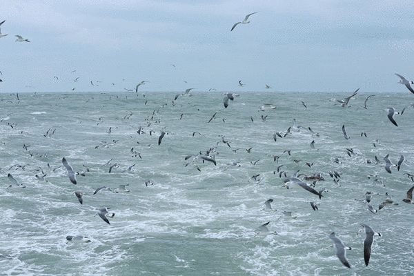 在出海的这些天,风暴时来时去。白色浪花匍匐在三四米高的深蓝涌浪上,每一秒摇晃都令身体发颤。