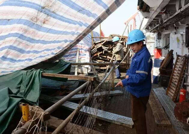 记者发现浮船坞目测达三层楼高?!耙惶旒遣坏靡舷露嗌偬?,船舱内船员房间被拆的七零八碎,根本没有休息的地方。但想起习近平总书记新年贺词中说的那句撸起袖子加油干,我们这是在为祖国大洋事业、为子孙后代干活,想到这儿就动力十足?!毙煳∥∷?。