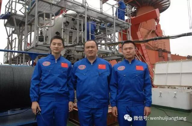 “蛟龙”号5000米海试潜航员叶聪、付文韬、唐嘉陵(从左至右)