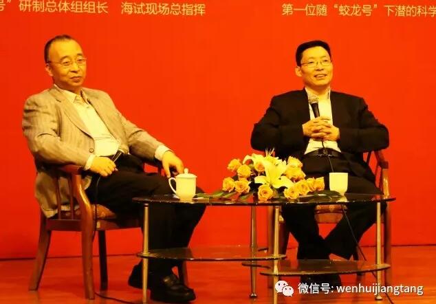 (6月10日)下午,中国大洋矿产资源研究开发协会秘书长兼办公室主任、“蛟龙号”研制总体组组长、海试现场总指挥刘峰做客文汇讲堂人文解读“四大未知疆域”(太空极地深海网络)系列讲座主讲《中国:正走向深海舞台中心》。同济大学海洋与地球科学学院教授、第一位随“蛟龙号”下潜的科学家周怀阳任对话嘉宾。两位嘉宾从中国在深海领域的未来发展,面对人类共同的海底资源,中国如何发挥领跑和主导角色构建命运共同体,《海洋法公约》生效20余年,各国在深海“跑马圈地”的战略生态如何分布等,为讲堂听友人文解读深海前沿科技信息。