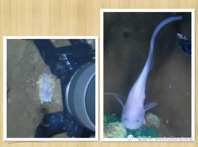 “蛟龙号”在7000米海底拍摄:7000米海底具刺海参(左)7000米海底狮子头鱼(右)