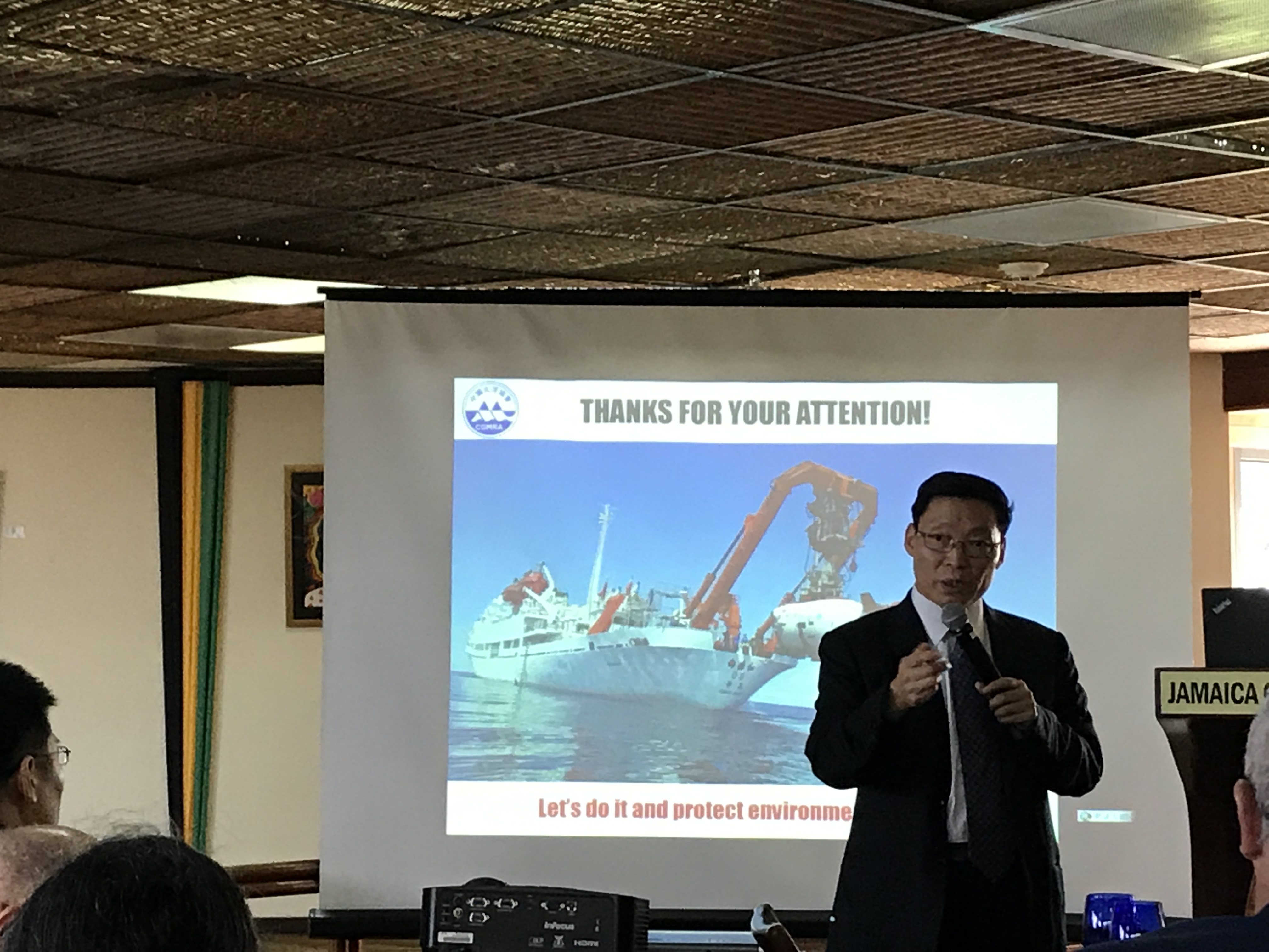 当地时间2017年8月8日国际海底管理局23届会议首日,中国大洋协会在牙买加首都金斯顿举办了“资源开发与环境?;さ钠胶猓˙alance of Resources Exploitation and Environmental Protection)”为主题的边会。这是中国自国际海底管理局1994年成立以来第一次在年会期间举办边会。中国驻牙买加大使、中国驻国际海底管理局常驻团代表牛清报,中国参加23届会议代表团全体成员,国际海底管理局秘书长麦克?洛奇先生,国际海底管理局法技委各位委员以及各国驻国际海底管理局使节、参加23届会议的其他各国代表团代表约150余人参加了此次边会。边会规??涨?,会议主题和会议提出的国际合作倡议得到广泛关注和一致赞誉。