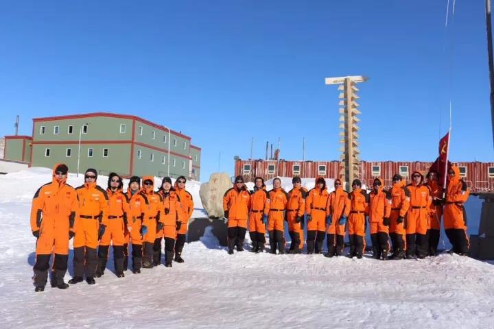 南极中山站19名越冬队员在国庆68周年来临之际,祝福祖国更加繁荣昌盛!祝祖国的各位亲朋好友国庆中秋双节快乐!身体健康!幸福美满!