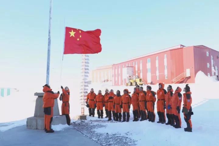 今天上午9点南极中山站阳光灿烂,19名越冬队员在零下25度的刺骨寒风中举行隆重的升旗仪式,庆祝中华人民共和国成立68周年!望着五星红旗在南极冉冉升起,我们心中无比激动与自豪!衷心祝愿祖国更加繁荣昌盛!祖国人民生活幸福安康!也祝愿我国南极考察事业取得更大的辉煌成就!