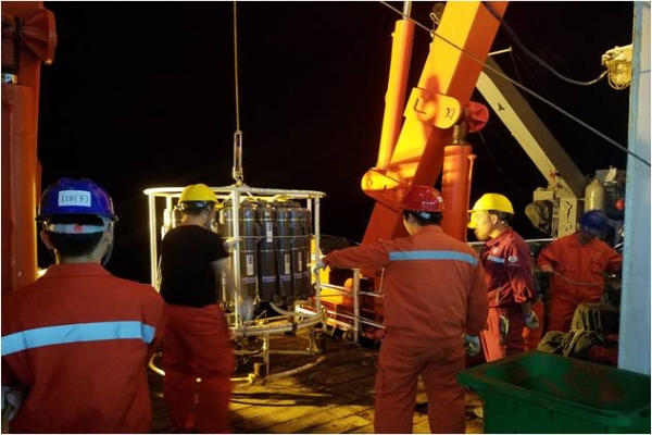 20171223日深夜23时(东三区),大洋49航次第一航段的第一站CTD作业,水文组、化学组、生物组都在翘首相盼,等待即将回收的24个采水瓶中的水样。然而当CTD回收至1400米水深时,软件显示7号采水瓶之后的所有采水瓶均不能触发,采水器故障。船上没有更换的CTD采水器备件,如采水器故障不能修复,那么将影响到第一航段后续的CTD采水任务。