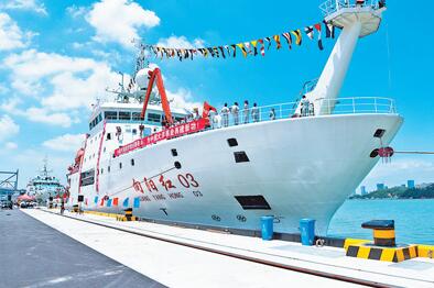 “向阳红03”科考船为中国自主设计与建造、综合观测技术能力达到国际一流水平的科学考察船,具备海洋动力、地质与地球物理、生物生态、海洋化学等环境综合科考能力,目前已安全航行6万多海里,先后圆满完成全球变化与海气相互作用深海底质调查等科考任务,取得丰硕成果。(新华社)