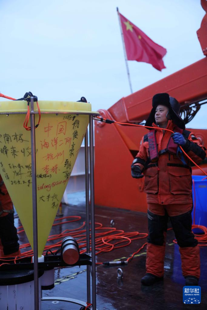 2月4日,考察队员牟剑锋在准备释放潜标。在海里放置的一年中,潜标将不断收集海洋数据,直到来年被回收。