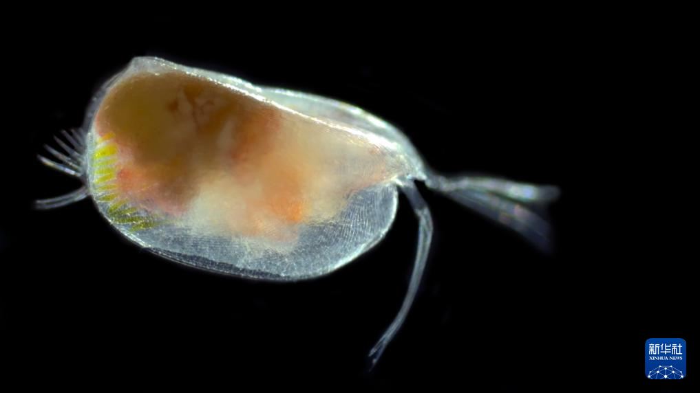 1月26日在阿蒙森海捕捞到的一种浮游动物,介形亚纲的海荧(显微镜照片)。